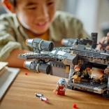 L’interno include un tavolo cucina, un letto, vani portaoggetti e numerosi accessori (frutta, ricetrasmittente, telescopio). Il vano di carico apribile con braccio prensile facilita le operazioni e amplia gli scenari di gioco. Costruisci, gioca ed esponi: il modello misura circa 11 × 36 × 27 cm.