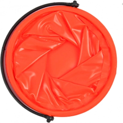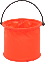 Il secchio pieghevole arancione può essere facilmente ripiegato in una forma piatta, facilitandone lo stoccaggio e il trasporto.
