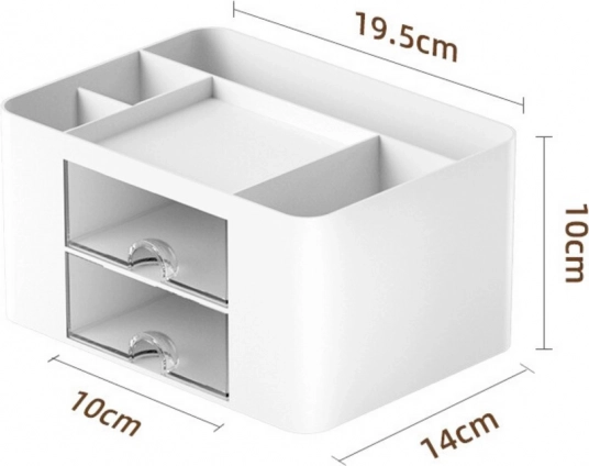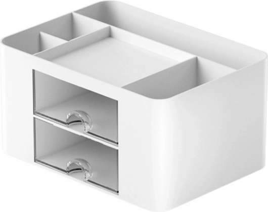 L'organizer è dotato di cinque scomparti e due cassetti che si aprono agevolmente, che permettono un facile accesso e una conservazione sicura degli oggetti più piccoli. Gli scomparti sono progettati per oggetti di diverse dimensioni, aumentando l'efficienza del lavoro.