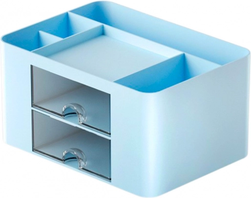 L'organizzatore blu offre 5 scomparti e 2 cassetti per diverse esigenze di organizzazione.