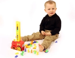 Divertente trenino del domino che, durante la corsa, dispone automaticamente fino a 60 tessere colorate in una fila ordinata. Offre cambio di direzione automatico in caso di urto, facile controllo della direzione ruotando il comignolo e scenografici effetti luminosi e sonori. Un ottimo aiuto per sviluppare motricità fine, pazienza e creatività dei bambini.