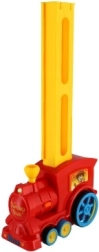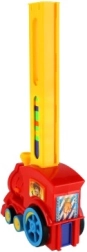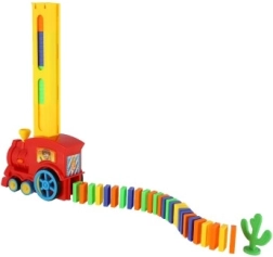 Il trenino, mentre avanza, dispone autonomamente le tessere colorate in una lunga fila. I bambini si divertiranno con una preparazione fluida e rapida per spettacolari cascate di domino.