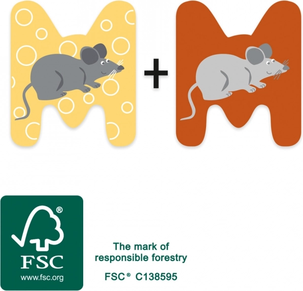 Il motivo allegro del topolino e i delicati colori pastello favoriscono un’atmosfera giocosa e la motricità fine durante la manipolazione. Le due varianti di colore permettono di abbinare la letterina all’arredo o ad altre lettere della stessa collezione.