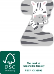 La lettera Z del marchio small foot è una decorazione ideale per ogni cameretta. La sua qualità di lavorazione con legno certificato FSC al 100% garantisce lunga durata e sicurezza per i bambini. Il design con zebra e i bordi arrotondati rendono la lettera non solo estetica, ma anche piacevole al tatto.