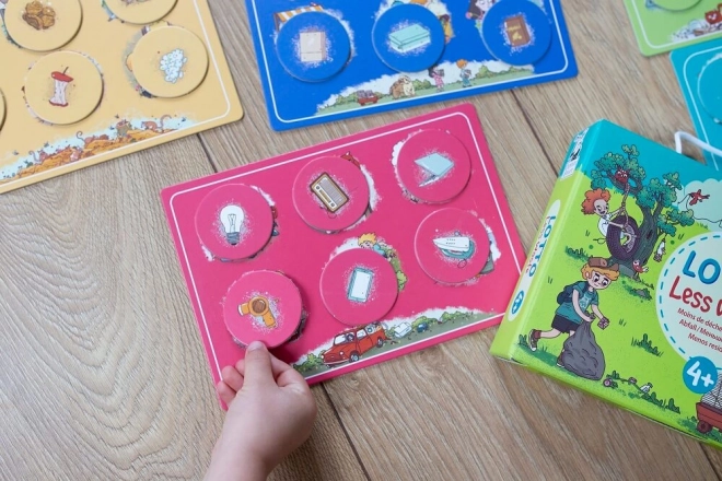 Sulle plance troverai oggetti di uso quotidiano e suggerimenti per un riuso creativo. I colori delle plance e dei gettoni sono adattati al gioco e potrebbero non corrispondere ai colori dei contenitori nelle singole città. Una partita dura circa 10–20 minuti, quindi è perfetta anche per brevi momenti di gioco durante la giornata.