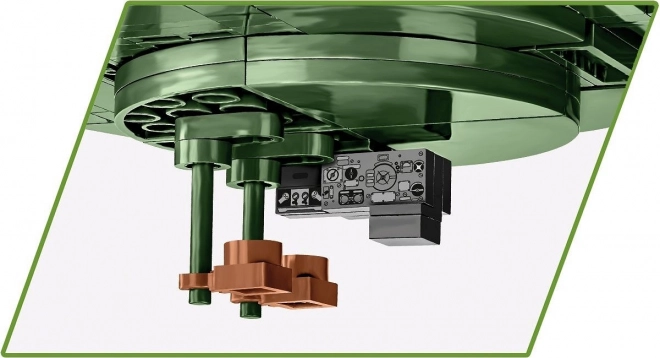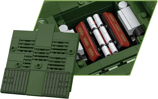 La torretta è girevole, la canna si alza e si abbassa, i cingoli ruotano realmente durante il movimento del modello. Sotto la torretta rimovibile troverai un’imitazione degli interni e sotto lo sportello di servizio è possibile collocare il modello del motore W-11. Le precise stampe dei periscopi e di altri dettagli sottolineano l’autenticità. Il set è completamente compatibile con altri marchi di mattoncini.