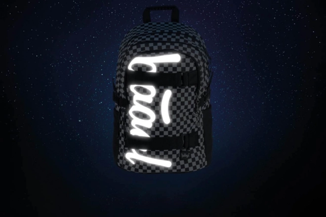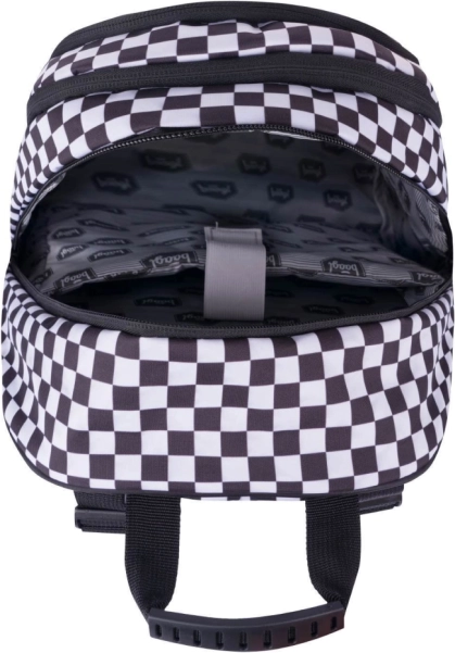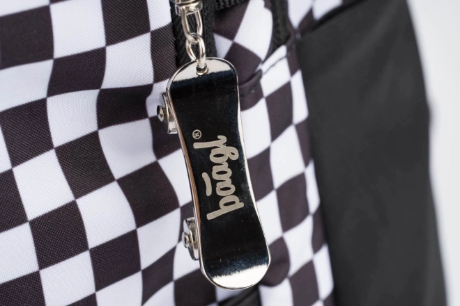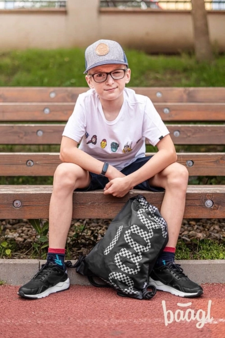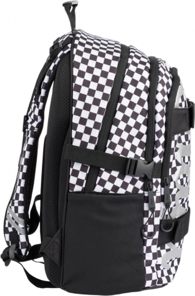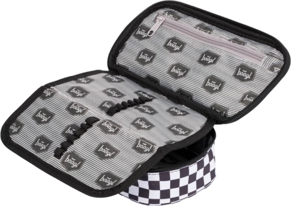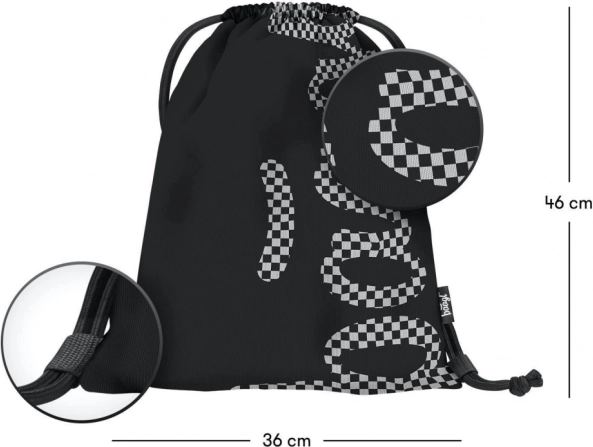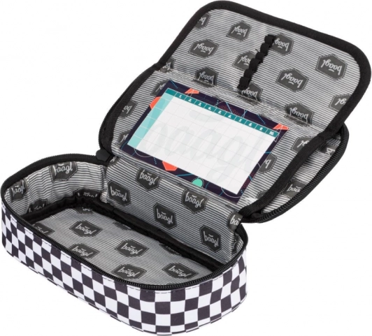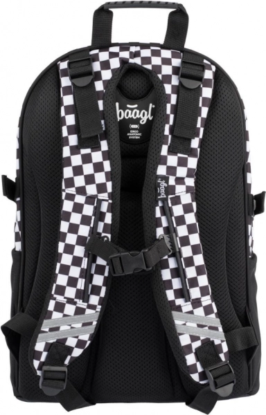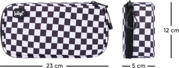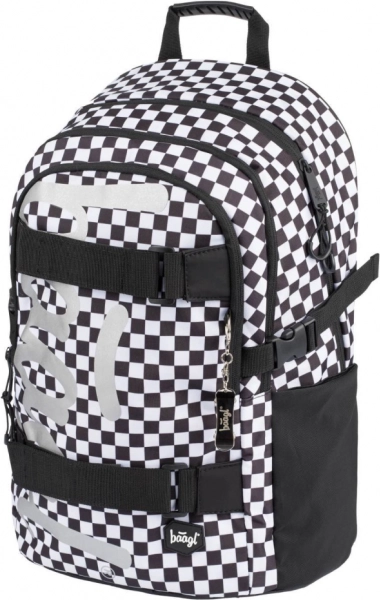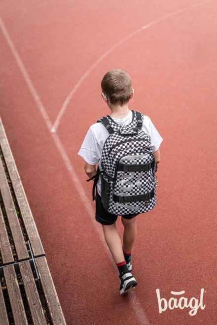 Elegante set scolastico BAAGL con motivo a scacchi in bianco e nero: include uno zaino capiente, un pratico astuccio e una sacca leggera. Lo zaino offre schienale ergonomico, 3 scomparti con organizer, tasca per notebook da 15'' e cinghie per skateboard. Grazie agli elementi riflettenti, al materiale impermeabile e al peso di soli 850 g è ideale per la scuola e per le attività extrascolastiche.