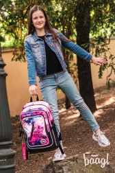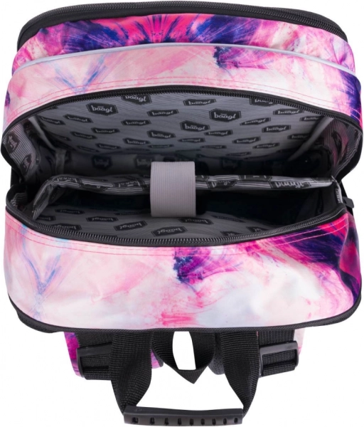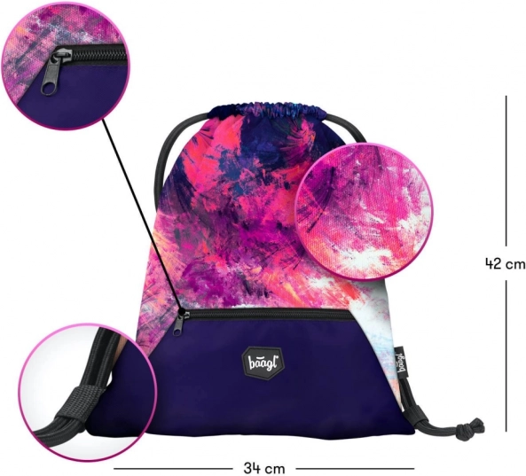 Elegante set scolastico per ragazze BAAGL Abstract comprende uno spazioso zaino a tre scomparti, una pratica sacca a zainetto e un astuccio rigido. Offre schienale ergonomico, ampia organizzazione, elementi riflettenti e materiali resistenti in un moderno design viola‑rosa con dettagli. Ideale dalla 3ª classe della scuola elementare.