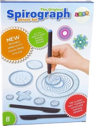 Questo spirografo introduce i bambini al mondo degli ornamenti e delle spirali precise. Grazie ai diversi stencil in plastica e ai pennarelli colorati a scorrimento fluido, i piccoli creatori possono combinare facilmente forme e colori per realizzare immagini originali. La pasta modellabile (spiro-putty) aiuta a fissare gli stencil al foglio, rendendo il disegno stabile e i risultati davvero puliti.