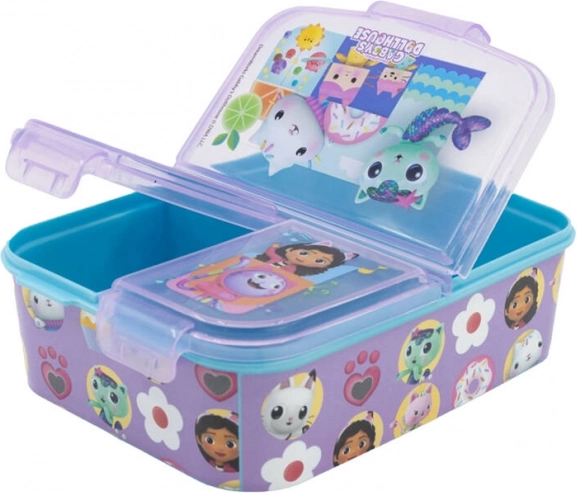 La scatola è decorata con cartoni colorati e fiori di Gabby's Dollhouse, che catturano l'attenzione di ogni bambino.