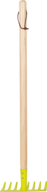 Rastrello per bambini leggero e resistente in un vivace colore verde per piccoli giardinieri dai 3 anni. Manico in legno ergonomico, testa in metallo robusta e peso ridotto facilitano la raccolta di foglie, erba e piccoli rametti. Include un pratico laccetto per appenderlo. Il prezzo si riferisce a 1 pz.