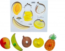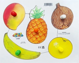 - Componendo motivi di frutta come mango, ananas, limone, cocco e platano mostra ai bambini il loro aspetto reale sotto la buccia.