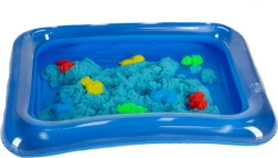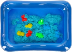 La sabbiera gonfiabile mantiene tutto in un unico posto e rende le pulizie più semplici. La sabbia blu è visivamente accattivante, si modella bene nelle formine e non richiede acqua. Dopo il gioco, basta scuoterla via da mani e superfici.