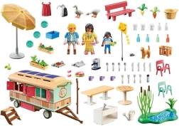 Questo set è il regalo ideale per ogni occasione, che motiva i bambini alla creatività e li aiuta a sviluppare competenze preziose. Include tre personaggi Playmobil, due oche, un vagone con sedie e tavolo, fioriere e molti altri accessori. L'interno del vagone può essere decorato liberamente con gli adesivi inclusi.