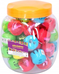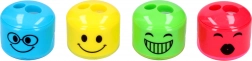 Cerchi un temperamatite affidabile che mantenga la tua postazione pulita e allo stesso tempo diverta con il suo aspetto? Questo temperamatite doppio con motivo a faccina ha un serbatoio pratico per i trucioli, così l'affilatura è pulita e confortevole. Le dimensioni compatte 4 × 4 × 3,7 cm si adattano a qualsiasi astuccio o cassetto.