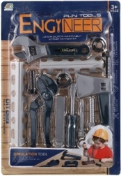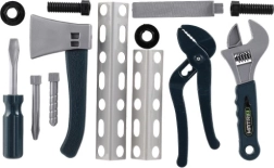 Il set include circa 13 pezzi di attrezzi come chiavi, pinze e cacciaviti, che i bambini possono utilizzare per simulare veri lavori di riparazione.