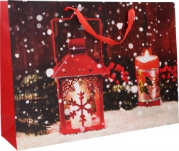 Puoi scegliere tra motivi accattivanti con decorazioni natalizie, lanterne e addobbi invernali che sottolineano l’atmosfera festiva. La borsa è riutilizzabile e rappresenta un modo rapido, estetico ed ecologico di confezionare senza bisogno di incollare o tagliare carta.