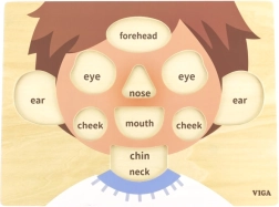 I bambini imparano in modo ludico a riconoscere occhi, naso, bocca, orecchie e fronte, consolidando i nuovi termini nella comunicazione quotidiana.