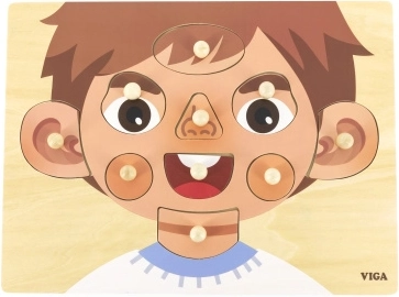 Questo puzzle in legno a tema volto è uno strumento ideale per le prime esplorazioni del mondo. Grazie ai pezzi in legno robusti con manopoline, i bambini apprendono facilmente i nomi come occhi, naso, bocca e orecchie, allenando al contempo le abilità motorie in modo divertente.