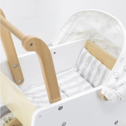 La carrozzina in legno Viga è la scelta ideale per i primi passi nel mondo della cura delle bambole. Combina una struttura in legno solida con bordi lisci e ruote in EVA antiscivolo, per un gioco sicuro e scorrevole su diverse superfici. I colori chiari e la cappottina tessile con delicato motivo conferiscono un aspetto pulito e moderno.