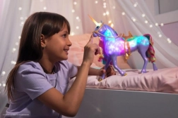 L'unicorno luminoso reagisce al tocco con effetti luminosi interattivi che creano un'esperienza arcobaleno.