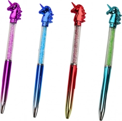 Penna a sfera con unicorno, cristalli scintillanti, refill blu 0,7 mm