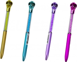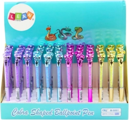 Questa penna a sfera di stile cattura l’attenzione con l’originale figurina di cobra sulla parte superiore e con il corpo trasparente in cui, a ogni movimento, brillano piccoli “diamanti”. Grazie al refill blu con tratto da 0,7 mm, scrive in modo fluido e leggibile, ideale per la scuola, l’ufficio e la casa.