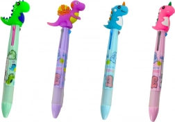 Divertente e pratica penna multicolore con motivo dinosauro che offre 3 colori di inchiostro in una sola penna e un facile cambio tramite cursore laterale. Perfetta per scrivere e disegnare, ideale per bambini dai 3 anni, con certificazione CE e conformità EN71.