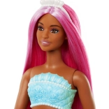 Questa colorata bambola Barbie sirena ispira i bambini a creare magiche avventure sottomarine. Ha una coda finemente sagomata con scaglie e pinne evidenti, un top a conchiglia e lunghi capelli rosa arricchiti da decorazioni oceaniche. Grazie alle parti articolate, è facile da posare e imitare il “nuoto” durante il gioco.