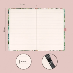 Metti ordine nei pensieri con l'elegante taccuino NOTIQUE Giglio. Il formato compatto 13 × 21 cm entra in borsa e nello zaino, la copertina rigida mantiene tutto al sicuro e l'elastico impedisce aperture accidentali.