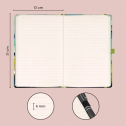 Il formato 13 × 21 cm entra perfettamente in borsa o nello zaino, sia che tu stia pianificando, tenendo un diario o annotando le attività di lavoro. La tasca interna contiene piccoli oggetti, biglietti da visita o fogli sciolti, per avere tutto in ordine in un unico posto.