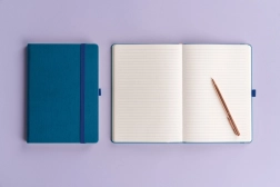 Il taccuino Notique Aprint in versione blu unisce praticità ed eleganza. Le pagine a righe facilitano una scrittura ordinata, mentre la superficie della copertina con texture fine ha un aspetto professionale ed è adatta al branding.