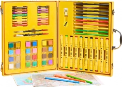 All’interno della valigetta trovi tutto il necessario per completare i tuoi progetti artistici. Il set include matite, pastelli, pennarelli a doppia punta, colori, due pennelli, gomma e temperino.