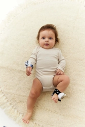 Grazie all'apposito velcro, il sonaglio può essere facilmente attaccato al polso, consentendo una presa comoda su tutto il giocattolo. La fascia è realizzata in materiale morbido, garantendo un uso confortevole. Il giocattolo è molto leggero e facile da trasportare, rendendolo un ottimo compagno per passeggiate o gite.