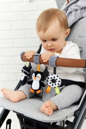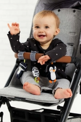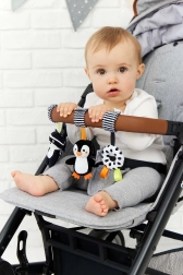 Il giocattolo può essere facilmente fissato su diverse superfici come passeggino, lettino o seggiolino auto, rendendolo un compagno ideale per i viaggi e a casa.