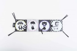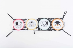 Facile da fissare al lettino o alla carrozzina grazie ai nastri e la sua struttura leggera lo rende ideale per i viaggi. Aiuta a sviluppare vista e tatto, insieme a conoscenze di base sugli animali.