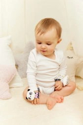 I sonagli da polso GaGaGu sono una scelta ideale per lo sviluppo della motricità fine e coordinazione motoria dei bambini. La caratteristica principale di questi sonagli sono le testoline di peluche degli animali, che invogliano i bambini ad afferrarli e esplorarli.