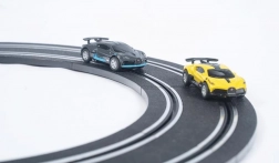 Vivi un'intensa atmosfera di gara sulla pista elettrica DRIVERO lunga 8,4 m. Grazie all'alimentazione tramite trasformatore potrai godere di prestazioni stabili e una guida affidabile. Sono incluse due macchinine BUGATTI con licenza e il tracciato può essere assemblato in tre diverse configurazioni a piacere.