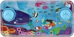 Questo classico gioco ad acqua in formato compatto 11 × 6 cm è ideale per i viaggi, la sala d’attesa o il relax a casa. Premendo due pulsanti crei un flusso d’acqua che trasporta gli anelli colorati: il tuo compito è infilarli sui piccoli piolini. Il principio semplice diverte bambini e adulti e favorisce la concentrazione.