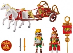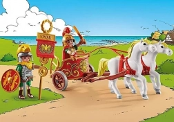 Presentiamo il divertente set da gioco Playmobil ispirato al mondo di Asterix, che include il senatore Bruto e un altro soldato romano, due cavalli bianchi, il carro, elmetti, scudo, stendardo e molti altri accessori per giochi di ruolo creativi.
