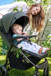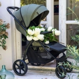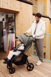 MoMi MIYA è progettato per i genitori che richiedono facilità di manovra, sicurezza e dettagli pratici nelle passeggiate quotidiane. La cappottina estensibile protegge da sole e vento, mentre lo schienale e il poggiapiedi regolabili assicurano una posizione comoda sia al neonato che al bambino più grande. Grazie alla doppia sicura di chiusura e al freno a pedale la guida è sempre sotto controllo.