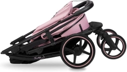 Le grandi ruote in schiuma EVA con ammortizzazione su 4 ruote superano agevolmente le irregolarità. Le ruote anteriori piroettanti bloccabili si adattano al terreno, mentre il capiente cestello contiene tutto il necessario. Il passeggino è conforme alla norma EN 1888 e dispone del certificato europeo TÜV, soddisfacendo severi requisiti di sicurezza.