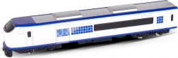 La finitura bianca con dettagli blu e linee pulite enfatizza l’aspetto moderno della locomotiva – ideale per il gioco e per l’esposizione.