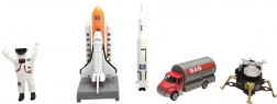 - Figura di astronauta, razzo, shuttle sulla rampa di lancio, modulo lunare, autocisterna