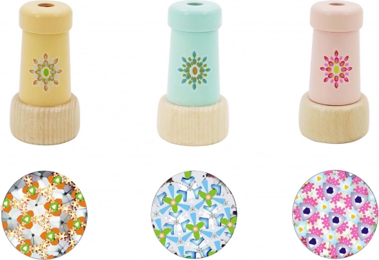 Goditi la magia del mondo nei colori con il nostro caleidoscopio in legno. Scegli tra le varianti blu, giallo o rosa e scopri motivi affascinanti.