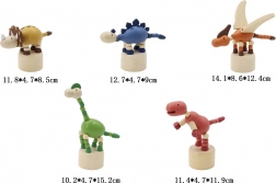 Scopri il divertimento con il dinosauro in legno schiacciabile, disponibile in 5 varianti di colore - blu, verde, marrone, arancione e rosso.