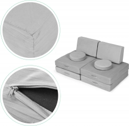 Scoprite la perfetta combinazione di comfort e divertimento con la nostra poltrona modulare per bambini. Questo pezzo unico di arredo composto da diversi cuscini di forme differenti è la scelta ideale per ogni bambino. La poltrona modulare permette di creare non solo una seduta confortevole, ma anche diverse costruzioni perfette per il gioco. Le dimensioni compatte offrono spazio sufficiente per un bambino, così il vostro piccolo potrà riposare, fare un pisolino o giocare in tutta comodità.