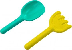 Colorato set di giochi da sabbia con mulino a sabbia a due ruote, paletta, rastrello e due formine per ore di divertimento creativo in spiaggia e nella sabbiera. Setaccio e imbuto permettono di sperimentare con sabbia e acqua, sviluppando la motricità fine e la creatività dei bambini. Realizzato in plastica resistente e sicura, adatto a bambini dai 3 anni.