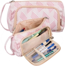 L'astuccio scolastico rosa a due scomparti è la scelta ideale per chi desidera mantenere il proprio materiale scolastico sempre perfettamente organizzato. Realizzato in tela e nylon, questo astuccio offre una durata prolungata ed è perfetto per l'uso quotidiano.