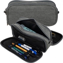 Un astuccio a tre scomparti elegante e pratico è progettato per offrire spazio sufficiente per tutte le necessità scolastiche o d'ufficio. Ogni scomparto è chiudibile con zip, garantendo un accesso rapido e facile al contenuto. Il comparto centrale più grande è ideale per set di pastelli o pennarelli completi, mentre le tasche laterali offrono spazio per oggetti più piccoli.